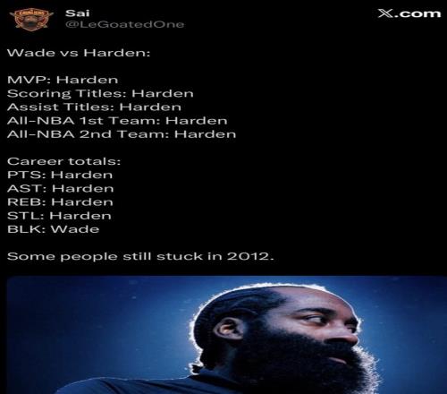 今天,贝弗利转发了一组韦德和哈登多项数据对比图,并写道:“从来没有不尊重任何人但是......”