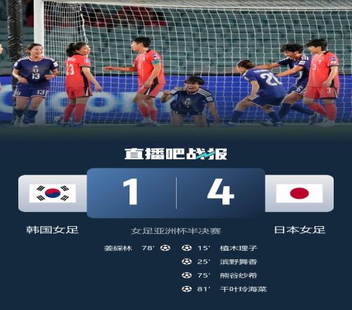 最终韩国女足1-4日本女足。