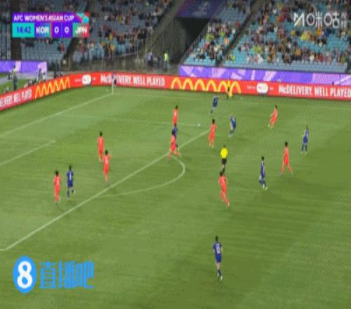 体育播报3月18日宣 北京时间3月18日17:00,女足亚洲杯半决赛韩国女足迎战日本女足的比赛在雅高体育场进行,上半...